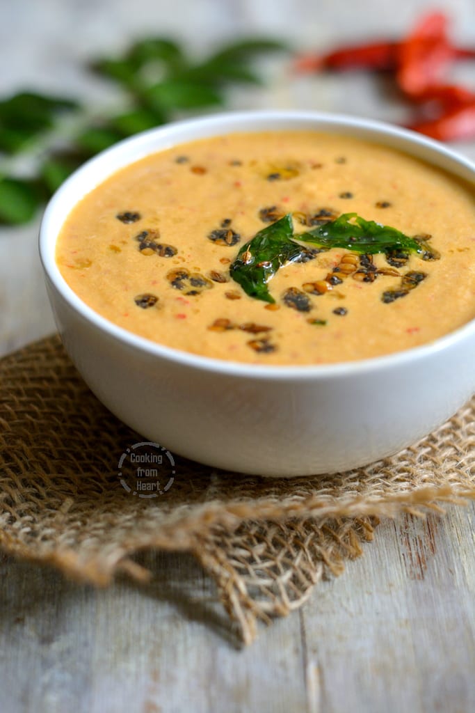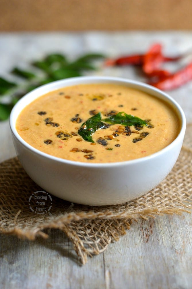 My mother-in-law usually makes Red Chilli Coconut Chutney by replacing green chillies with red chillies but also adds a couple of cloves of garlic. This recipe is different in that there is no roasted gram. It just has three main ingredients – coconut, shallots and dried red chillies apart from tamarind, salt and water. It is light, super flavorful and so delicious with soft idlis or crispy dosa. Apparently this is Kerala style coconut chutney recipe as I could distinctly remember the breakfasts were had during our Kerala holidays. As I didn’t have any shallots, I used one small onion. When things are better, I cant wait to make this again with fresh coconut!