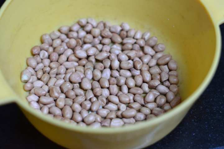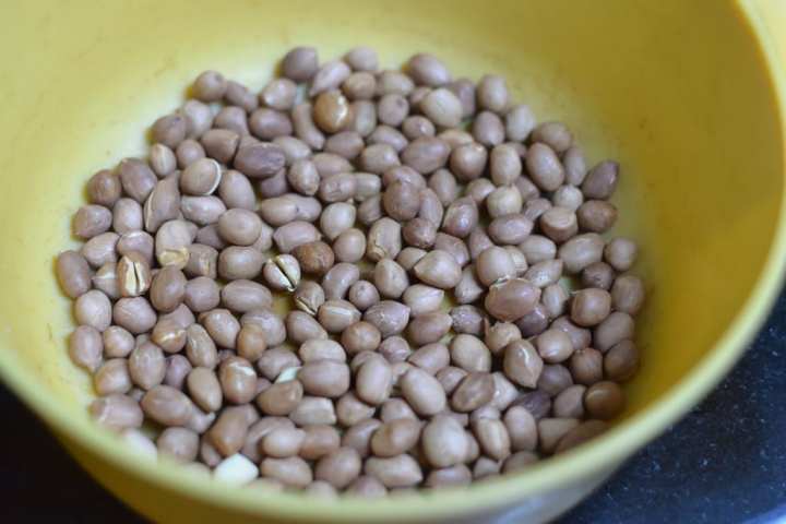 - In a microwave safe bowl add raw peanuts and set it on high power for 30 secs. Take it out and give a shake, placing it in for another 30 secs.