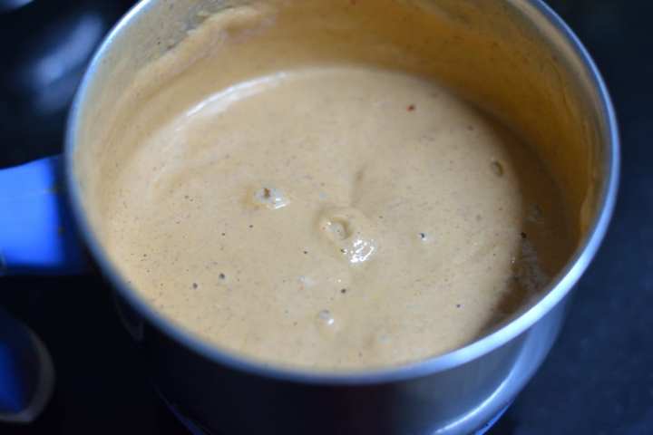 - Remove onto a bowl and add the rest of the tempering on top. Serve with hot idlis and dosa.