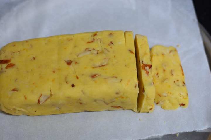 Detailed step-wise picture recipe of making Almond Orange Shortbread Cookies