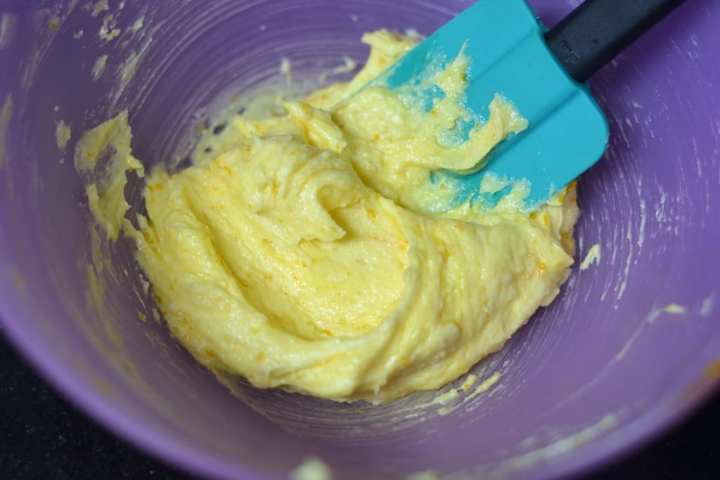 - Add vanilla extract and orange zest. Mix well using a silicon spatula.