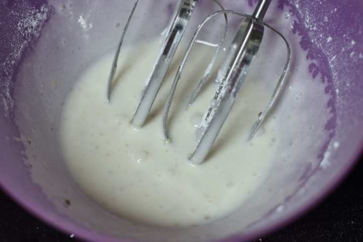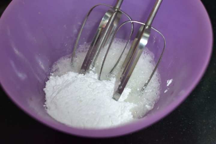 - In a mixing bowl, add egg white from one egg. Whisk it until it is frothy for 2-3 mins on low speed.