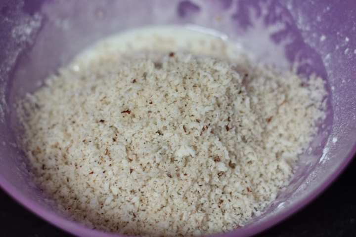 Dry roast the fresh grated coconut for 4-5 mins on low flame until it is dry. Make sure not to change the color of the coconut.