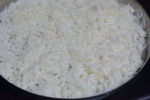 First soak 1 cup basmati rice in enough water for 15-20mins. This helps in cooking the rice better.