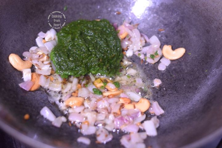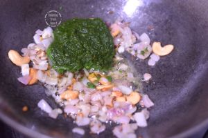 - Add this prepared paste to the pan and cook on low flame for 2-3 mins.