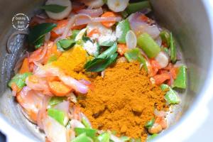- It is better to always fry the rice and dal mixture along with the vegetables and sambar powder until there is no moisture. This again would help in faster cooking comparatively.