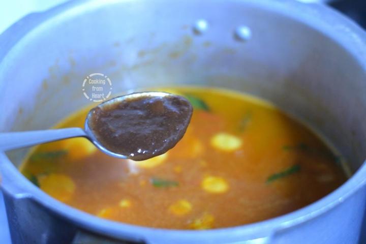 Next add 1 teaspoon thick tamarind extract. Mix well.