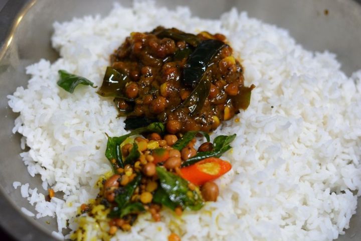 Let it rest for half an hour to a few hours before serving. I usually served it with either potato fry or raw banana fry or colocassia fry and papad.