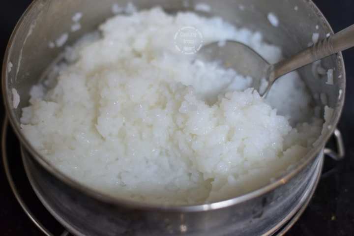 1. Mash the cooked rice until is mushy. Add some water if needed, the grains shouldn’t be visible.