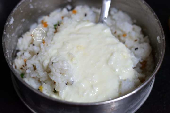 Detailed step-wise picture recipe of making Curd Rice | Daddojanam | Thayir Sadham