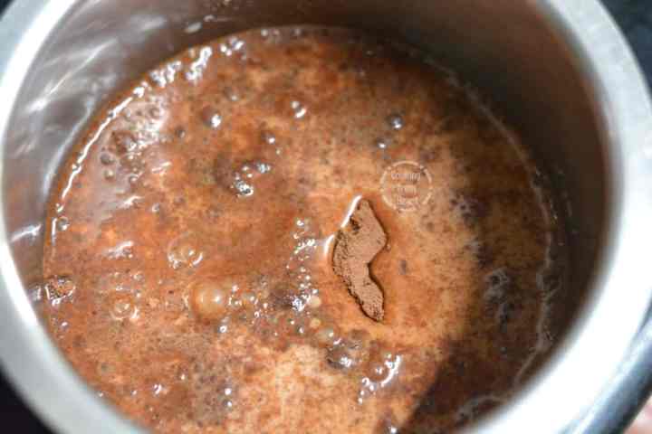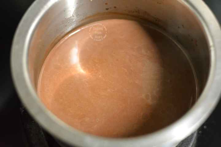 Now place the pot on low heat and stir using a whisk continuously. In 4-5 minutes, as the mixtures begins to boil remove from heat.