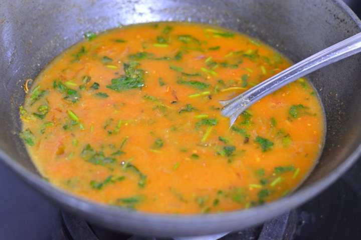 Next pour the water from soaked basmati rice and adjust salt if needed.