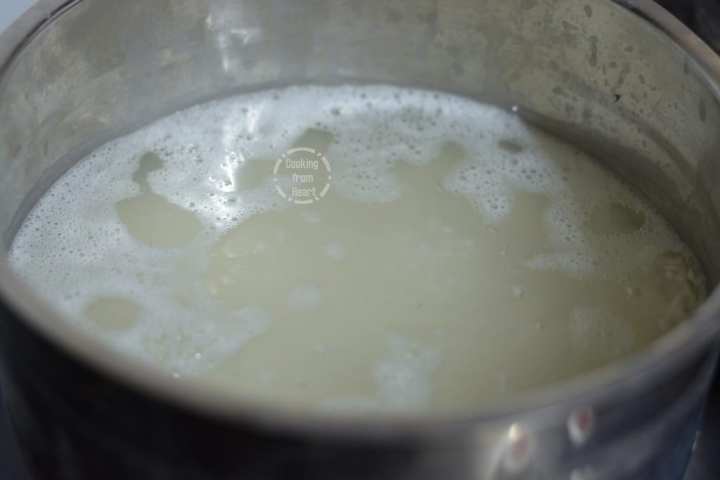 13. Meanwhile, bring a large pot of water to rolling boil. Add salt as needed for cooking rice. Add the soaked rice. Cook covered for 7-10 mins on medium flame.