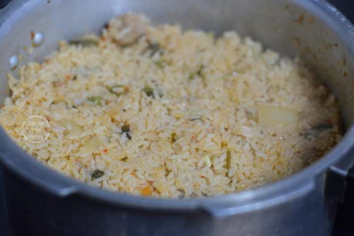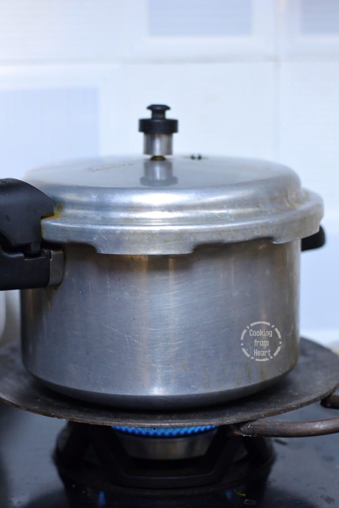 12. Cook for one whistle only and let the pressure subside naturally before opening it up.
