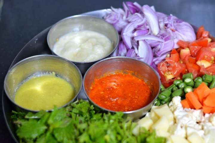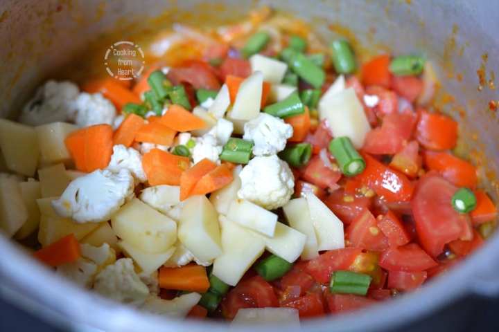 - 2 cups Cut Vegetables (Carrots, French Beans, Potatoes, Cauliflower and Green Peas)