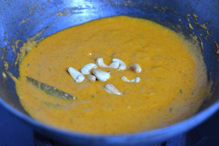 Add roasted cashews and garnish with finely chopped coriander leaves. Switch off the heat.