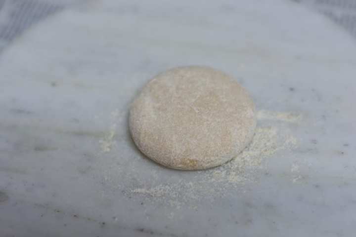 - Roll the phulka into a small disc of 10cm dia. It should fit the flame of your stove and it should be even in thickness. Not too thin, not too thick.