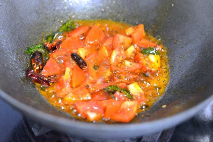 Now add chopped tomatoes and cook for 3-4 mins on medium flame.