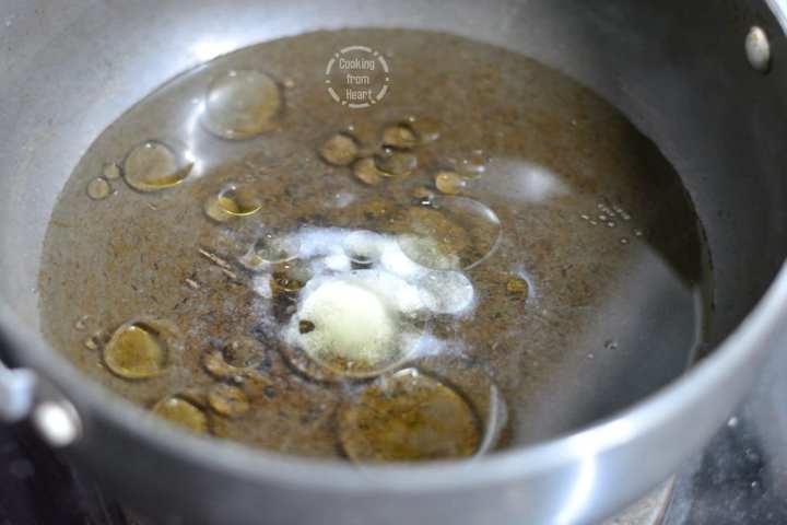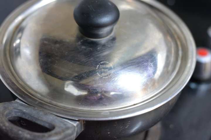 - In a wide bottomed pan, heat water along with salt and 1 teaspoon of gingelly oil.
