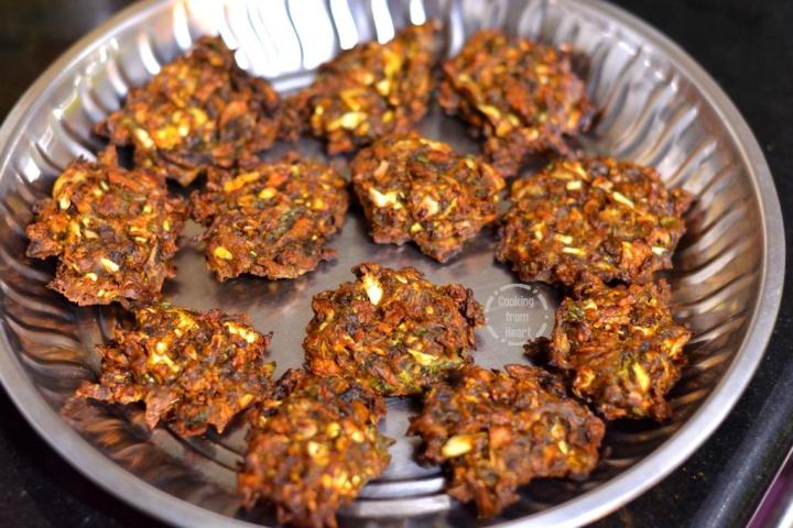 Drain off the excess oil and set them on a kitchen tissue. Repeat it with rest of the mixture.