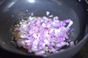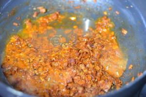 - Next add 1 large onion finely chopped and fry until it is light golden brown.