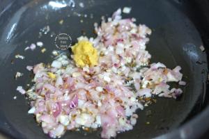 - Add ½ teaspoon ginger garlic paste and fry for a couple of mins.