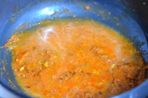 As the gravy comes together, add ½ cup of water and salt as needed. Cook it covered for 7-9mins on low flame. Adjust by adding water as needed. The gravy should neither be too thick nor thin.