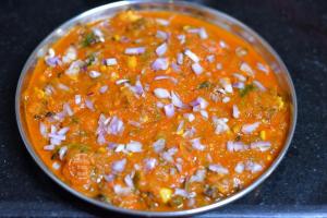 - Sprinkle finely chopped onions and coriander leaves on top. Serve immediately.