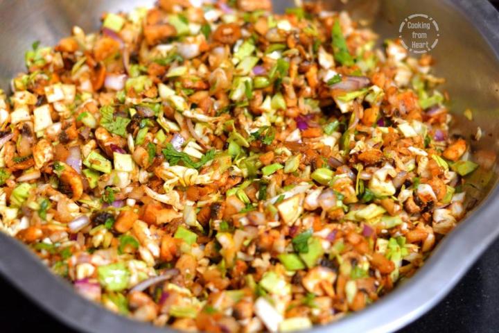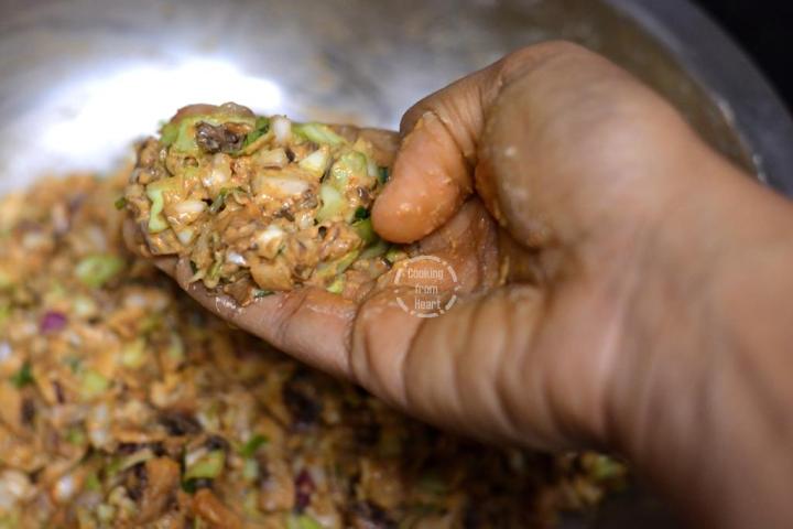 Mix it well and set it aside for 5 mins. Mushrooms, cabbage and onions leave water when mixed with salt.