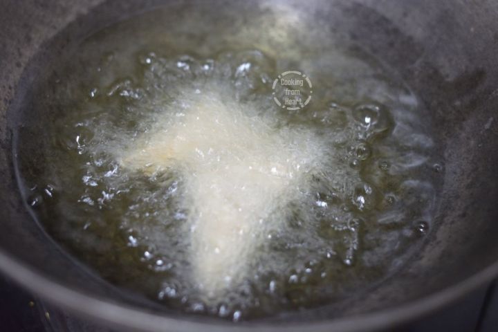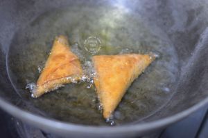 Fry on low- medium flame until the the samosa are golden brown and crispy.