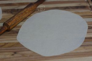 Samosa patty sheets should be rolled as thin as possible. This helps in yielding crispier outer pastry when the samosa is fried.
