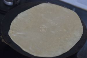 - Heat a pan on medium flame and place the prepared roti. Cook for 10-15 secs on each side. Make sure not to cook longer until it develops spots.