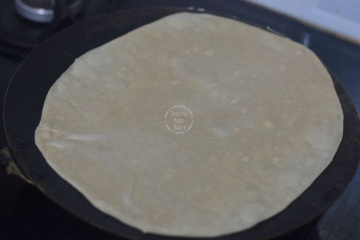 Heat a pan on medium flame and place the prepared roti. Cook for 10-15 secs on each side. Make sure not to cook longer until it develops spots.