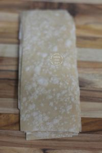 - Stack all the prepared rotis, cut off from all 4 sides to get square shaped patty sheets.