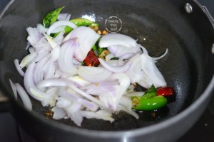 - Now add 1 medium onion thinly sliced. Cook on low flame until it is translucent.