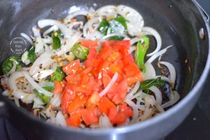 - Add 1 small tomato finely chopped. Continue cooking on low flame until they are mushy.