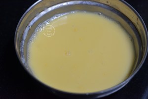 Now pour the slurry into the pan carefully. Make sure the heat is set at low.