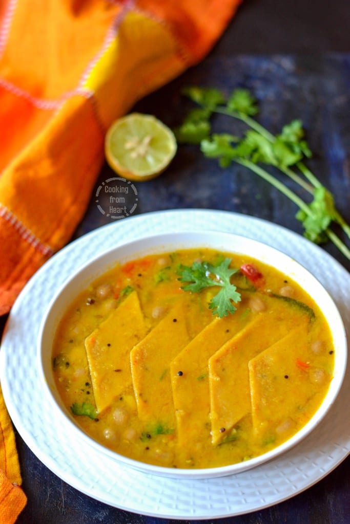 Now don’t be intimidated by the number of ingredients. Look past them and you can see how easy Dal Dhokli is. Spiced Whole Wheat Flour is cooked in a dal/lentil based gravy which has right amount of sweet and spice, something I love of the Gujarati cuisine. With a dollop of ghee and a squeeze of lemon juice, this was such a comfort food.