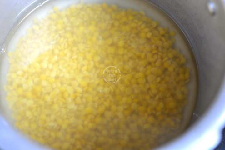 - In pressure cooker, add washed toor dal with enough water and pressure cook it for 4 to 5 whistles.