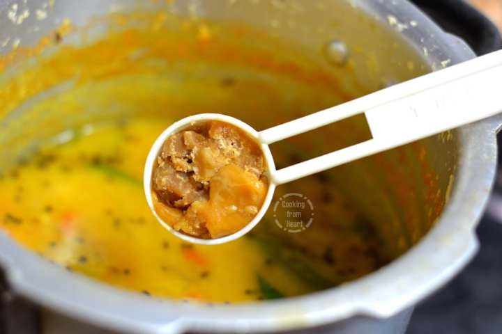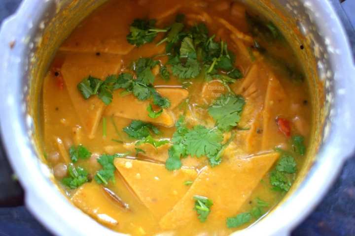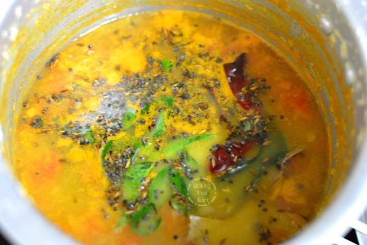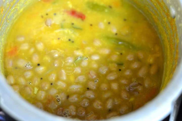 1. In pressure cooker, add washed toor dal with enough water and pressure cook it for 4 to 5 whistles.