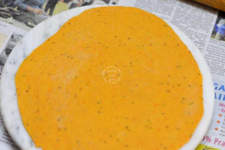 2. Roll it thin dusting extra flour (as little as possible) as needed.
