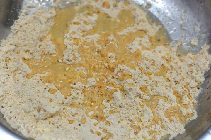 3. Knead this into a soft pliable dough by adding water as needed. Set this aside until the Dal is ready.