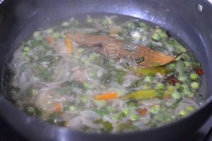 Next add ½ cup mixed vegetables chopped (1 small carrot, 4-5 french beans, 1 small potato and handful of green peas – fresh/frozen).