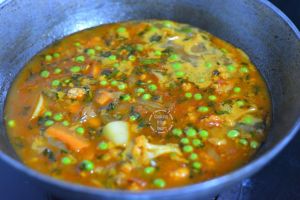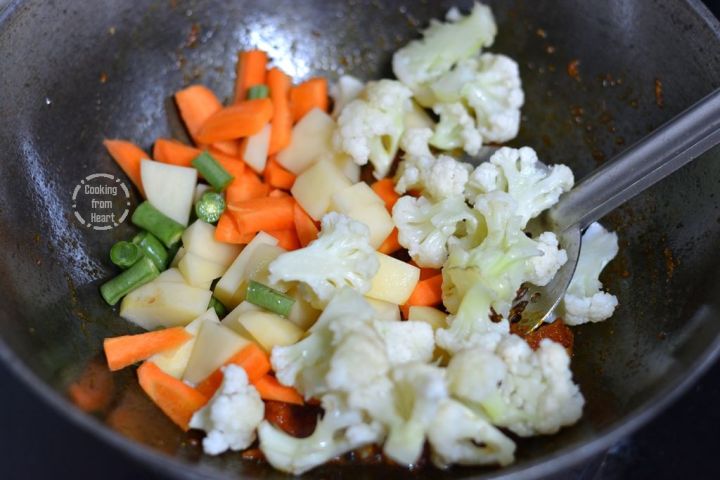 - Add 1 cup mixed vegetables, cook for a couple of minutes.
