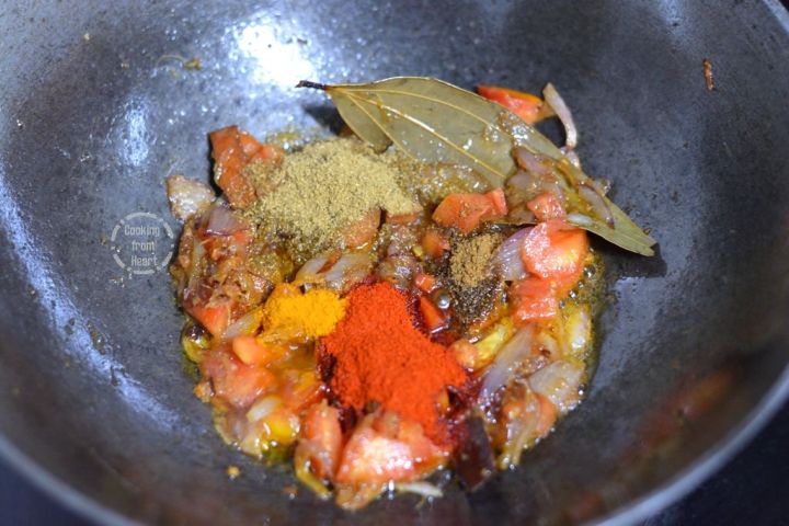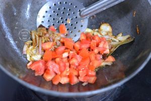 - Add 1 medium tomato finely chopped and cook until mushy.