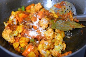- Add salt as needed and continue to cook on low flame for 3-4 mins.