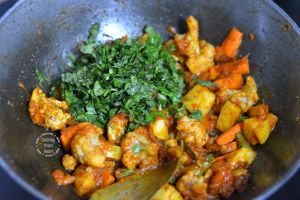 Now add 2tbsp each of finely chopped mint and coriander leaves.