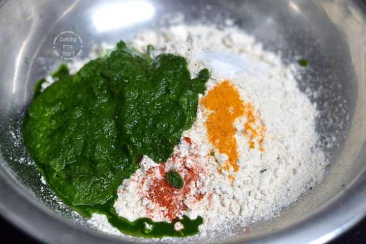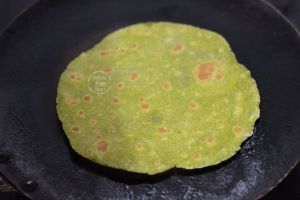 Spice Powders like Red Chilli Powder, Turmeric Powder and Asafoetida are added while preparing the dough for spinach roti.