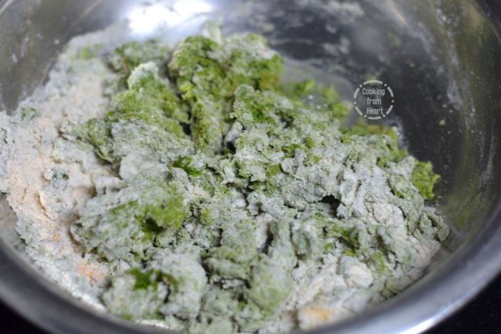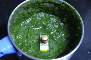 Do not add any water while pureeing the spinach. It has enough water content to be able to grind to a smooth puree.