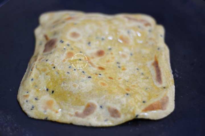 13. Flip it to the other side and drizzle some oil.